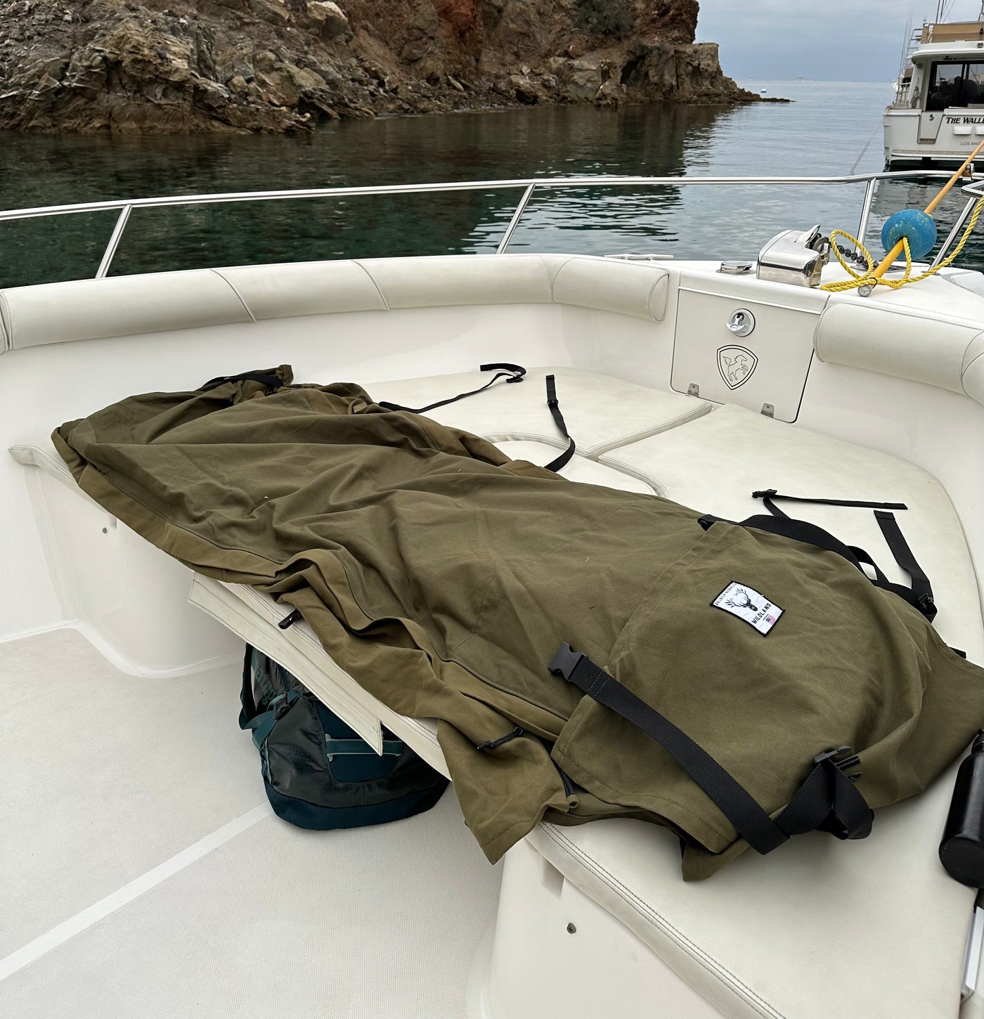 " I have the wildland and the Los Padres bedroll both equipped and ready to go with sleeping pads and bags. To keep it simple I pretty much don’t go anywhere without em. Whether I’m on the boat , spearfishing , working , hunting or just camping its loaded in the truck.. heck sometimes I just unroll it in the back of my truck and pass out before surfing a remote spot in the morning. Love the products from Bullkelp!"
